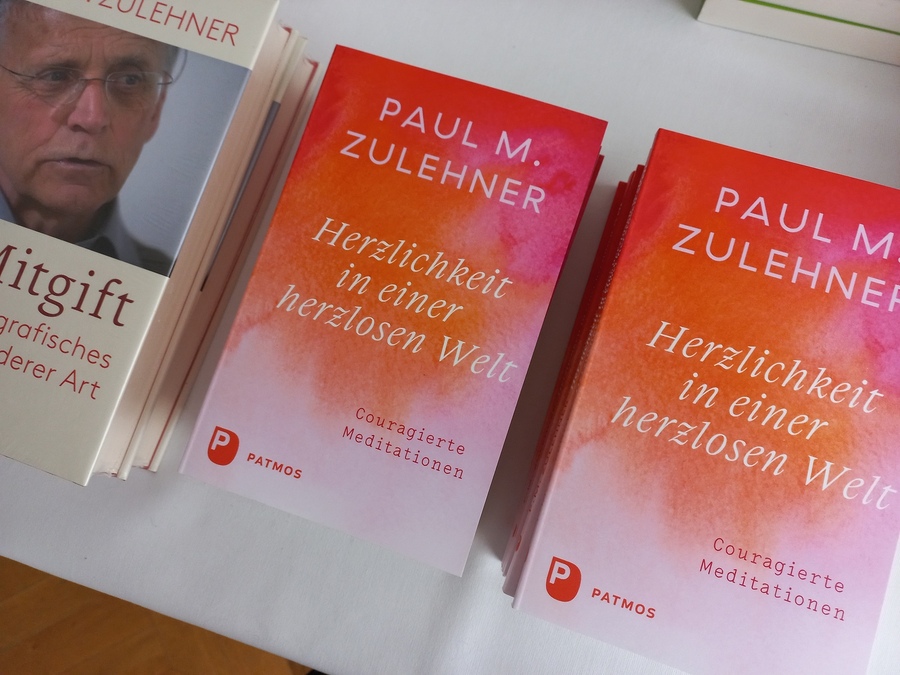 Nach dem offiziellen Teil der Veranstaltung waren alle Teilnehmenden eingeladen, noch ein wenig zum Austausch zu bleiben und den Abend bei einem Gläschen Wasser oder Wein miteinander ausklingen zu lassen. Mit Freude angenommen wurde auch das Angebot der Büchersignierung durch Prof. Zulehner.