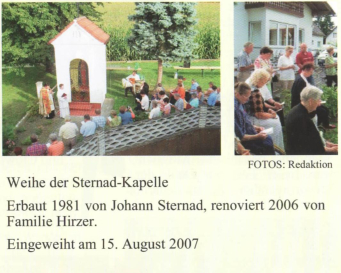 Die Kapelle wurde von der Fam. Sternard als Ort der Zuflucht, der Andacht und des Gebetes errichtet.
